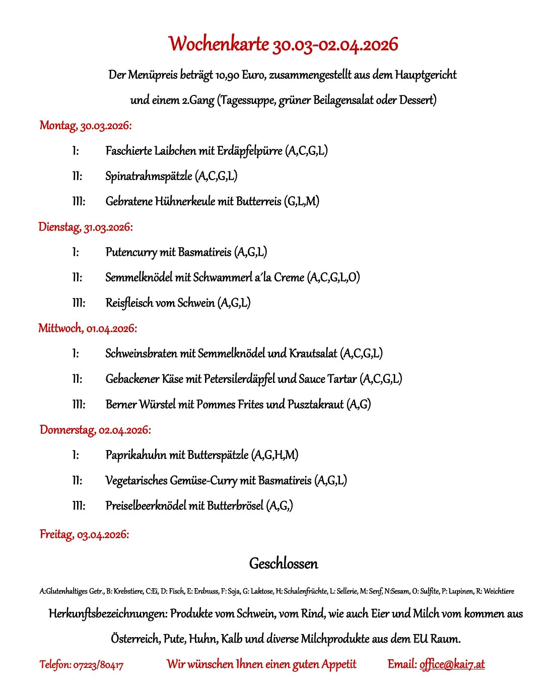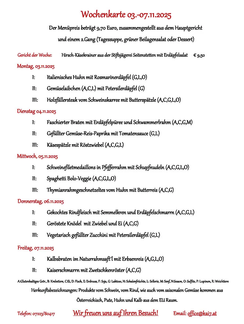 Mittagsmenü der KAI 7 Betriebskantine im Ennshafen - Harald Limberger